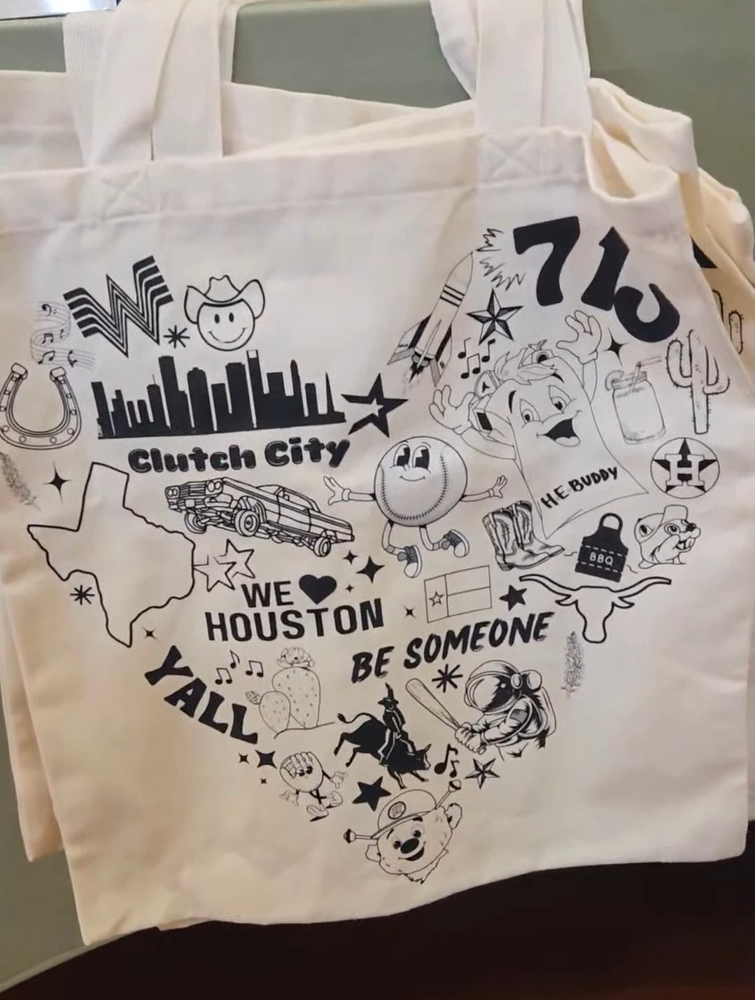 A tribute to the city and state we call home. This hand-drawn collage features all the iconic Texas and Houston-themed doodles that make the Lone Star State so special. Whether you're a lifelong local or a Texan at heart, this tote is designed to carry a piece of home with you wherever you go.